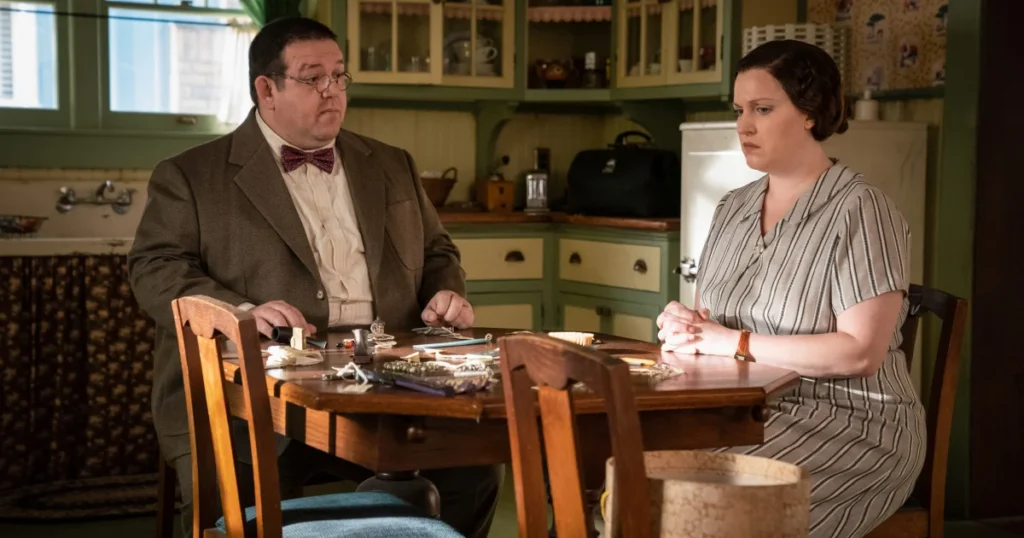 Ogromne wrażenie zrobiła też na mnie Allison Tolman jako Alma. Jej przemiana na przestrzeni sezonu była naprawdę imponująca – od niepozornej kobiety po postać, którą trudno rozpoznać w finale. Każdy odcinek przynosił drobne zmiany w jej zachowaniu, mowie i postawie. Miała też świetną chemię z Nickiem Frostem, który zagrał jej męża – Bertrama. Na pierwszy rzut oka to ciepły, niegroźny weterynarz, ale skrywa mroczny sekret, który idealnie kontrastuje z jego pozorną dobrocią. Były momenty, w których naprawdę było mi go szkoda – mimo wszystko był całkowicie oddany żonie i gotów zrobić dla niej wszystko.