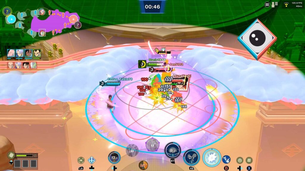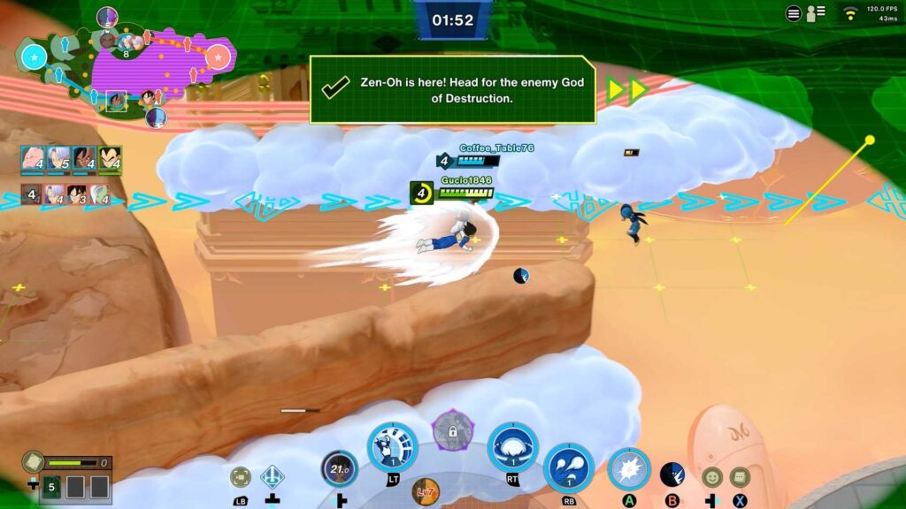 Na starcie dostajemy kilkudziesięciu bohaterów. Od Goku, Vegety i Piccolo, przez Buu, Bojacka, po Daburę. Roster obejmuje różne ery serii, a role i zestawy umiejętności są czytelne z umiejętnościami, które nawet u „prostych” postaci potrafi przysporzyć kłopotu np. Krillin skutecznie oślepia wrogów, a Buu sprawdza się jako wsparcie (debuffy gumą i leczenie promieniem – nikt inny tego nie potrafi). Ruchy i techniki oddają ducha anime i działają tak, jak podpowiada intuicja fana. Techniki są widowiskowe, każda wymiana ciosów daje satysfakcję z rozpierduchy, ponieważ jest głośno i wybuchowo – zwłaszcza stosując ulti generujące potężne fale energii. Twórcy spełnili moje oczekiwania oddając esencję anime. Oczywiście… problem zaczyna się przy balansie (typowe dla mob). Część postaci np. Cooler jest zdecydowanie OP. Po kilku levelach potrafi zdjąć 90% paska życia jednym ciosem, niezależnie od przeciwnika. Brak systemu ekwipunku (znanego z innych mob) ogranicza możliwości kontrgry. Na domiar złego podział na role słabo działa w solo-kolejce: dwie linie na czteroosobowy skład, brak czatu głosowego i tekstowego – organizacja strategiczna praktycznie nie istnieje. To poważna wada w grze, której esencją jest drużynowa koordynacja (czy też jej brak).