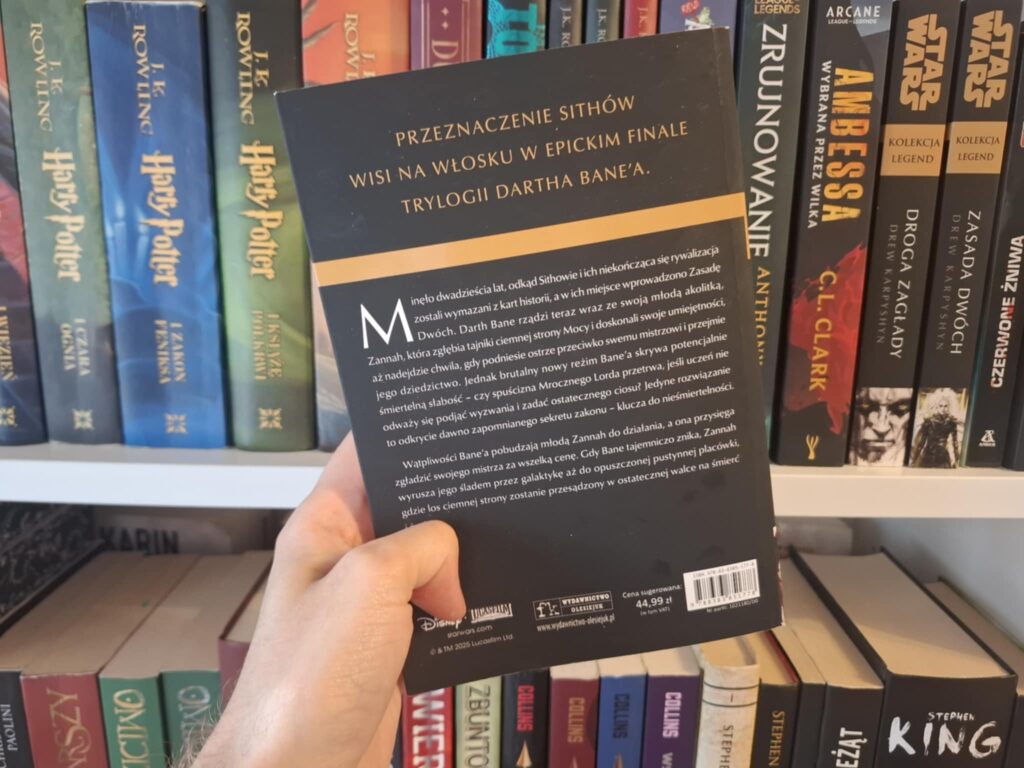 Całą trylogię oceniam bardzo wysoko, to jedna z najlepszych opowieści osadzonych w uniwersum Gwiezdnych Wojen, a jej finał okazał się godnym zwieńczeniem. Szczególnie podobało mi się, że nawet na tym etapie znalazło się miejsce na poszerzenie mitologii Sithów o nową wiedzę, która ma przełomowe znaczenie dla całego uniwersum. To właśnie tu rozpoczyna się motyw poszukiwania recepty na nieśmiertelność, którego echo szczególnie silnie wybrzmi w historii Palpatine’a i jego mistrza. Przygody Bane’a w tej części dostarczyły świeżych pomysłów i nowej energii. Czytało się je z przyjemnością, a kolejne sekwencje akcji pokazywały, że nawet po tylu doświadczeniach Bane wciąż potrafi dominować i narzucać swoją przewagę.