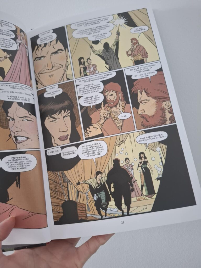 Wydanie zasługuje na wysoką ocenę. To gruby tom w twardej oprawie, z okładką zaprojektowaną w stylu Mignoli, która od razu przyciąga wzrok. Kredowy papier oddaje intensywność kolorów, a format jest nieco większy niż standardowy, co pozwala w pełni docenić panoramy i scenografie. Na końcu znajdziemy galerię alternatywnych okładek, a także teksty redakcyjne i posłowie, które rzucają światło na kulisy powstawania komiksu oraz inspiracje autora. Tego typu dodatki bardzo cenię – pomagają głębiej zrozumieć historię, dostrzec smaczki i poczuć kontekst, który łatwo mógłby umknąć.