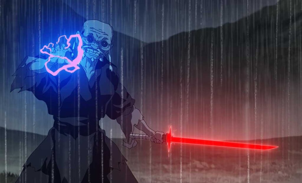 Twórcy potraktowali formułę antologii z ogromną kreatywnością, czerpiąc pełnymi garściami z możliwości, jakie daje niezależność od kanonu. Najlepiej widać to już w pierwszym odcinku, który jest moim ulubionym – przenosi nas do feudalnej Japonii, osadzając technologię Gwiezdnych Wojen i pojęcie Mocy w realiach tamtejszej kultury. Efekt jest zdumiewający. Elementy znane z sagi jak droidy, miecze świetlne, stroje szturmowców nabierają świeżości i symbolicznego znaczenia. Szturmowcy w samurajskich zbrojach, parasol świetlny jako broń, czarno-biała kolorystyka przełamana błyskiem barwnych mieczy, wszystko to buduje klimat dojrzałego anime, w którym prostą fabułę ubogacają niedopowiedzenia i moralne niuanse. Strony konfliktu nie są jednoznaczne, a motywacje bohaterów pozostają tajemnicą aż do samego finału.