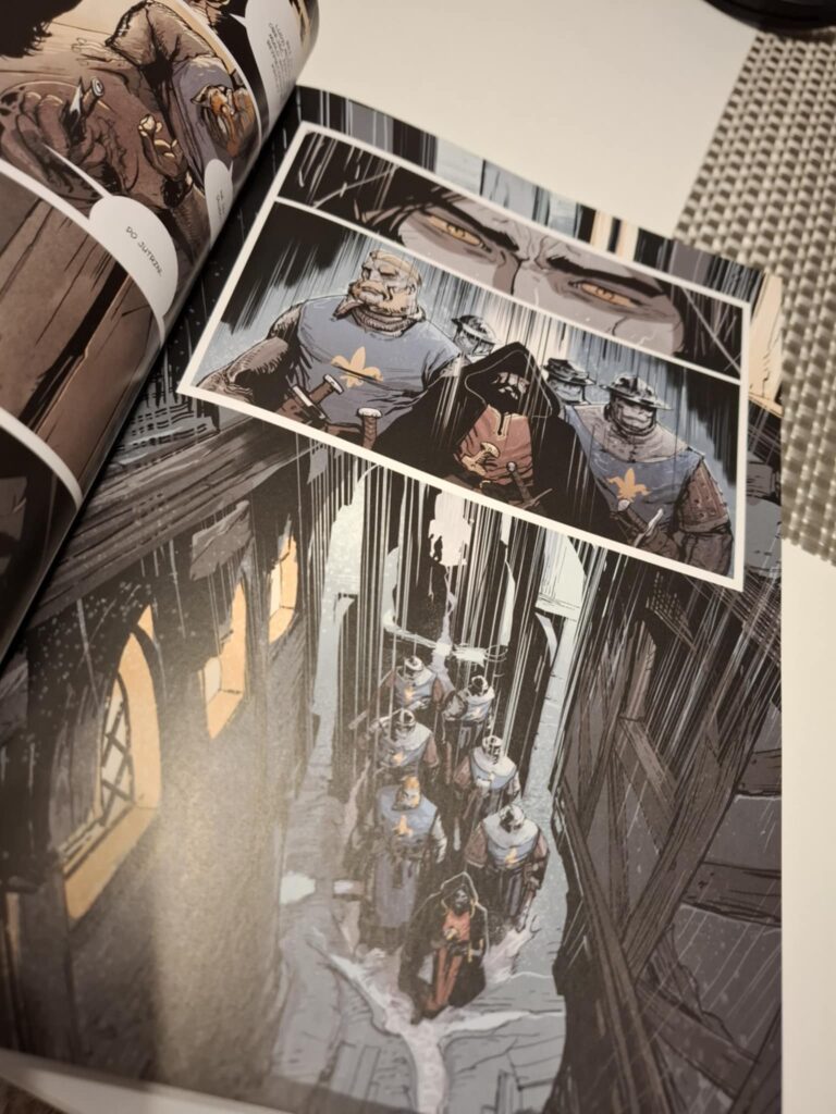 Wydanie komiksu również robi świetne wrażenie. Większy format, twarda oprawa i gruby kredowy papier pozwalają w pełni docenić intensywność kolorów. Rysownik operuje grubszym konturem, wyrazistymi ciepłymi barwami i głębokim cieniowaniem, które wspólnie tworzą unikalną stylistykę i idealnie oddają świat brudny, mroczny i pełen napięcia, a warstwa graficzna tylko ten klimat potęguje. Sceny akcji mają doskonale uchwycone kadrowanie, a rozkładówki dzięki szczegółowości zyskują pełnię wyrazu. Postacie są dobrze rozrysowane, trzymają się proporcji, a ich emocje oddane są w sposób sugestywny. Jedyne, czego było mi trochę mało, to dodatki. Dwie, trzy strony materiałów uzupełniających dały kilka ciekawostek, ale aż się prosiło o więcej. Mimo to nie mogę powiedzieć, bym był rozczarowany – to tylko drobne niedosyty w obliczu naprawdę dopracowanej całości.