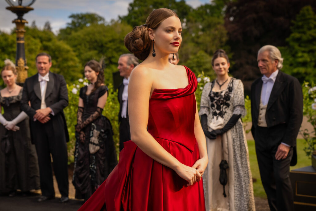 Drugi sezon podsumowałabym jednym zdaniem. To bałagan nie z tej ziemi, ale w pięknym opakowaniu. Ta produkcja momentami przypomina fabularny chaos, jednak nie można jej odmówić jednej rzeczy czyli realizacyjnego rozmachu. Serial mimo scenariuszowych potknięć, wciąż trzyma wysoki poziom jeśli chodzi o budżet, co widać niemal w każdej scenie. Zdjęcia są zachwycające, ujęcie z lampionem w pierwszym odcinku zapada w pamięć, a wykorzystane lokacje robią wrażenie: od surowej, romantycznej Szkocji po słoneczne Włochy. Scenografia i kostiumy są dopracowane w najmniejszych detalach. Stroje? Zapierają dech i przyciągają uwagę, ale jako stylizacja epoki i charakteryzacja postaci pozostawiają sporo do życzenia. Kostiumy często przypominają bardziej wystylizowany instagram niż XIX-wieczną Anglię, a fryzury i makijaże są na tyle współczesne, że wybijają z immersji. To raczej modowa wariacja na temat epoki niż jej wiarygodne odtworzenie i to niestety widać.