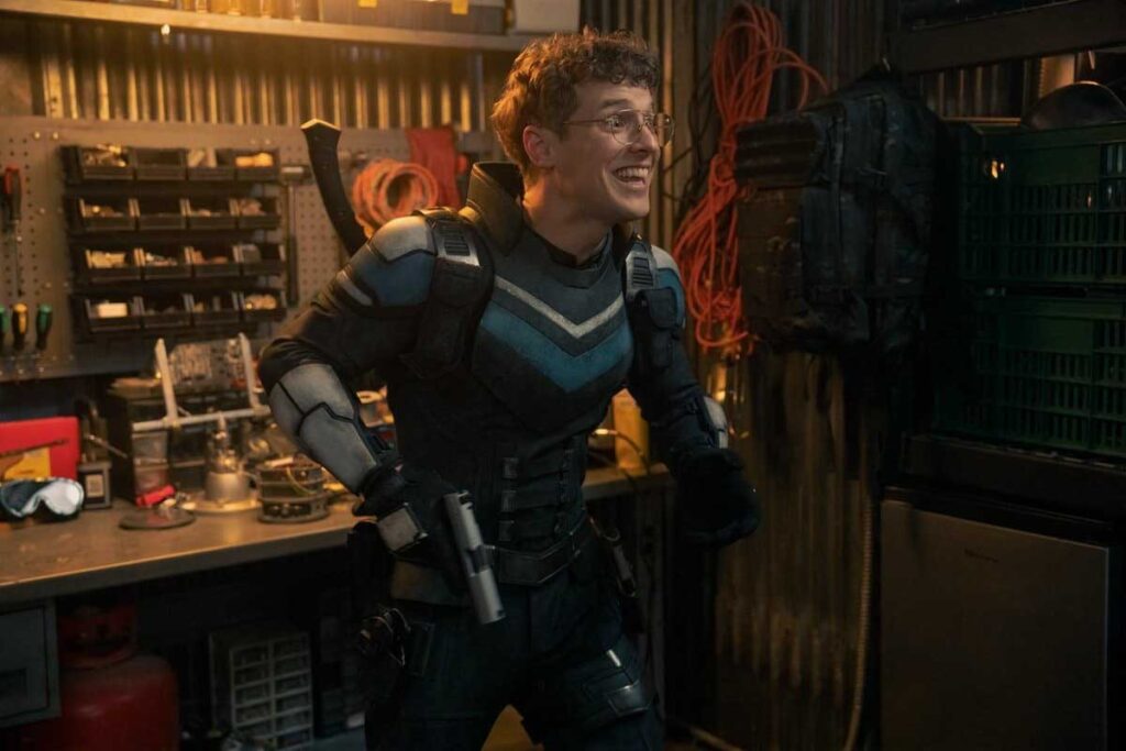 Nie mogę pominąć postaci drugoplanowych, które po raz kolejny kradną ekran. Economos przechodzi fascynującą przemianę, pokazując, że nawet najbardziej niepozorna postać może mieć ogromne znaczenie, a jego specyficzny charakter… zaskakuje praktycznością w wybranych scenach. Vigilante zyskuje zaskakującą głębię. Jego emocjonalny wybuch w piątym odcinku to jeden z najmocniejszych momentów sezonu, pokazujący, że za komediową maską kryje się ktoś naprawdę zraniony, ale… dość mało poświęcono mu czasu antenowego co zostawiło we mnie lekki niedosyt. Nawet orzełek przestał być wesołą maskotką i stał się pełnoprawnym uczestnikiem historii! Jego wątek jest szalony, absurdalny, ale też w jakiś sposób uroczy i znaczący dla przesłania serialu. Choć w dłuższej perspektywie jego wątek wydaje się zbędny, spokojnie do wycięcia, to jednak ma siłę uderzenia, a dla DCU może okazać się przyszłościowy.