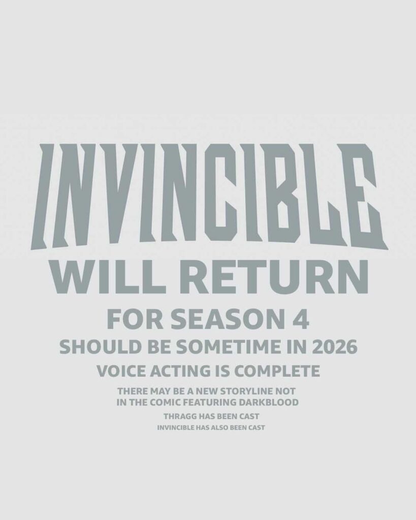 Prime Video potwierdziło klimatyczną grafiką, że kolejny sezon popularnego „Invincible” pojawi się w przyszłym roku. Co więcej, potwierdzono że prace ukończyła obsada głosowa, a w kontynuacji zobaczymy niewystępujący w komiksie wątek Darkblood.