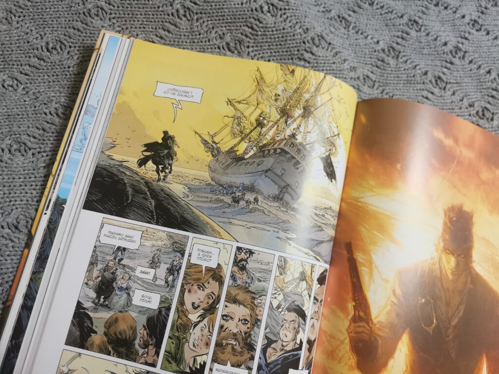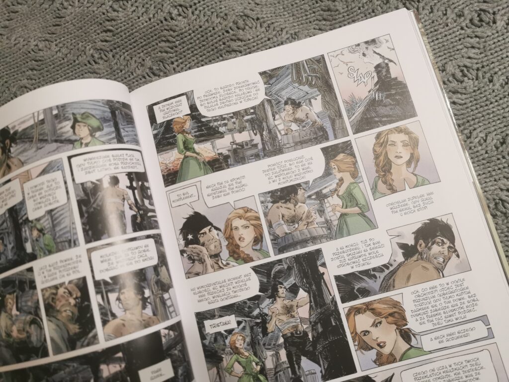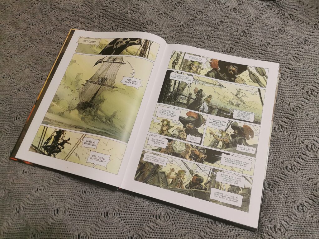 Najmocniejszą stroną tej pozycji są rysunki Mathieu Lauffraya. Każda plansza robi ogromne wrażenie, jest pełna detali i kipiąca dynamiką. Sceny bitew morskich, piękne i szczegółowe ilustracje okrętów czy spotkania w tropikalnej dżungli zachwycają, zwłaszcza gdy artysta rozciąga je na dwie strony. Kolorystyka potęguje klimat: duszne noce, egzotyczne plaże i burzliwe morza naprawdę przyciągają wzrok czytelnika. Wszystko jest niesamowicie dopracowane i pełne szczegółów. Wizualnie to jeden z najpiękniejszych komiksów, jakie miałam okazję czytać.