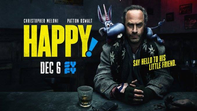 Happy! to pełna akcji komedia kryminalna, oparta na komiksie o tym samym tytule autorstwa Grant Morrissona. Serial opowiada historię Nicka Saxa, byłego policjanta, który teraz pracuje jako najemnik. Po nieudanej akcji zostaje postrzelony i trafia w stan śpiączki. Gdy się budzi, zaczyna widzieć swojego towarzysza – latającego, niebieskiego jednorożca o imieniu Happy, który jest wyobrażeniem dziecka porwanego przez przestępców. Happy pomaga Saxowi uratować dziewczynkę, a ich współpraca wciąga ich w mroczny, pełen przemocy świat przestępczości, z nieoczekiwanymi, absurdalnymi sytuacjami. Serial łączy brutalne, szokujące momenty z surrealistycznym humorem i mrocznym klimatem.
