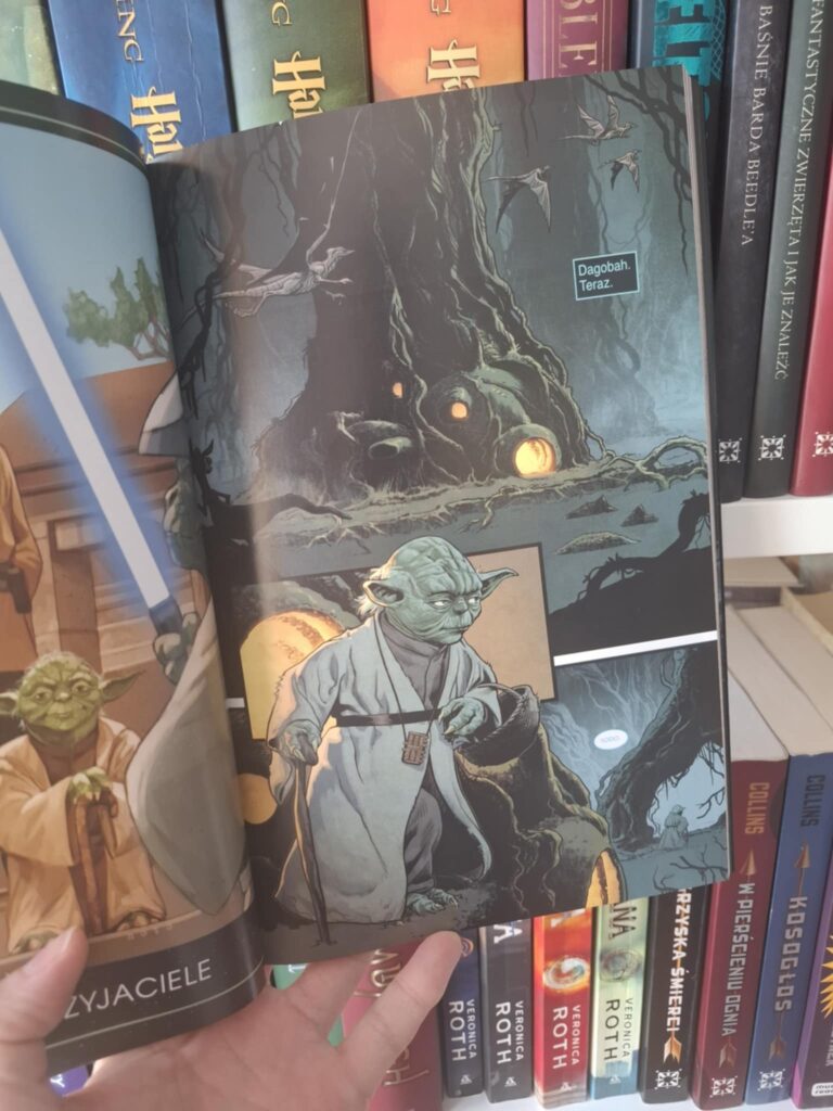 To pozycja, która zaskakuje swoją formą – zamiast spójnej fabularnej linii otrzymujemy urywki z życia Yody, układające się w mozaikę jego doświadczeń, decyzji i wartości. Dla kogoś, kto zna go głównie z filmów, to cenna możliwość spojrzenia na mistrza od innej strony. Nie tylko jako wojownika, ale jako nauczyciela, myśliciela, czasem samotnika podejmującego ryzykowne, nieortodoksyjne decyzje. Szczególnie wyróżnia się pierwsza opowieść, w której Yoda postanawia zamieszkać na obcej planecie i wychować jej mieszkańców, ucząc ich samodzielności poprzez dość surowe i nietypowe metody. To opowieść o moralnych testach, o wychodzeniu poza schemat. Choć miała potencjał, zabrakło mi w niej emocjonalnego ciężaru. Relacje Yody z mieszkańcami są zarysowane zbyt powierzchownie, a zagrożenie, choć obecne, nigdy nie staje się naprawdę dotkliwe. To rozdział, który intryguje formą, ale nie zostaje w sercu na dłużej.
