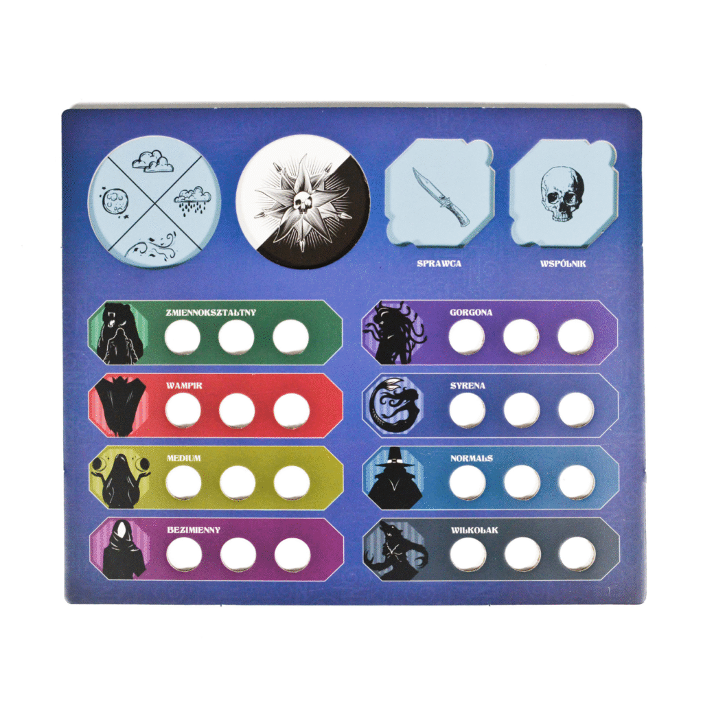 Jeszcze lepiej, że twórcy nie poprzestali na nazewnictwie, a wraz z nimi zaoferowali coś więcej. Każdy z wyrzutków dysponuje unikalną zdolnością, zgodną z duchem serialu, ale też wyraźnie wpływającą na dynamikę partii np. grając Syreną, można ignorować niektóre zdolności przeciwników, natomiast Zmiennokształtny potrafi wymienić żeton wspólnika, co potrafi całkowicie odwrócić losy rozgrywki. To ważne, bo jednym z warunków zwycięstwa jest poprawne wskazanie wspólnika sprawcy. Oczywiście możemy dyskutować, czy wszystkie mechaniki wyrzutków oddają 1:1 umiejętności serialowe – wątpię po Syrenie, która unika wpływów innych graczy zamiast nimi manipulować, ale… nadal trzyma się to kategorii zdolności, więc można przymknąć na to okiem. Na uwagę zasługuje też mechanika „Rączki”. Jej obecność pozwala blokować dostęp do poszczególnych pomieszczeń, co w odpowiednim momencie potrafi przechylić szalę zwycięstwa. Takie drobne detale sprawiają, że gra nabiera strategicznej głębi, a przy tym pozostaje lekka i przystępna.