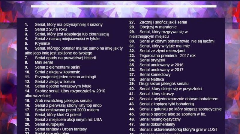 Chcesz wyjść z serialowej strefy komfortu? Szukasz czegoś nowego? Zajrzyj po więcej informacji! Wyzwanie serialowe to inicjatywa prowadzona już ósmy