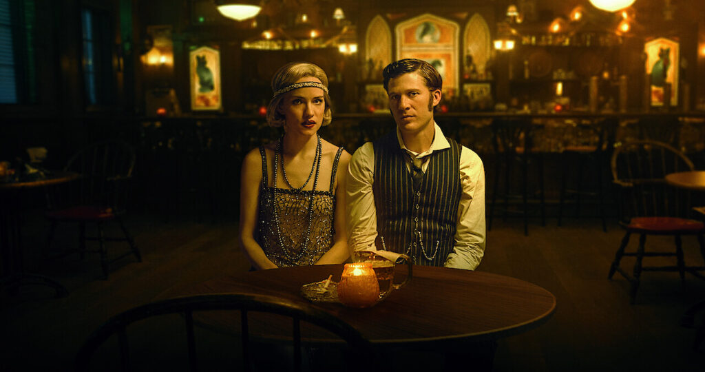 Odbiegając już od postaci – bardzo podobają mi się zabiegi retrospekcji, które w swoich serialach stosuje Mike Flanagan. Zaczynamy na opak – tuż przed wielkim finałem, później przechodzimy do dziecięcych lat Madeline i Rodericka. Kolejne sceny to czasy współczesne, później wczesne dorosłe życie głównych bohaterów i tak kilkadziesiąt razy na zmianę. Przez ten zabieg serial wydaje się ciekawszy i mniej przytłaczający. Oczywiście tutaj taki nie był, ponieważ wszystkie odcinki obejrzałam w ciągu dwóch dni. Kolejnym istotnym szczegółem, który wyróżnia twórczość wyżej wspomnianego reżysera jest to, że we wszystkich trzech serialach gdzie budynek odgrywa istotną rolę, znajdziemy kilku powtarzających się aktorów np. Henry Thomas, który gra Fredericka Ushera. W „Nawiedzonym dworze w Bly” grał Henry’ego Wingrave’a a w „Nawiedzonym Domu na wzgórzu” głowę rodziny, Hugh Craina. Wracając do Usherów – ich historia była jedną z ciekawszych jakie widziałam w serialu. Chciałabym więcej o tym napisać, ale niestety bym wam zaspoilerowała dużą część tego, co musieli zrobić by zdobyć bogactwo i jakie pobudki nimi wtedy kierowały. Każdy etap ich życia był ciekawie napisany i tak też poprowadzony.