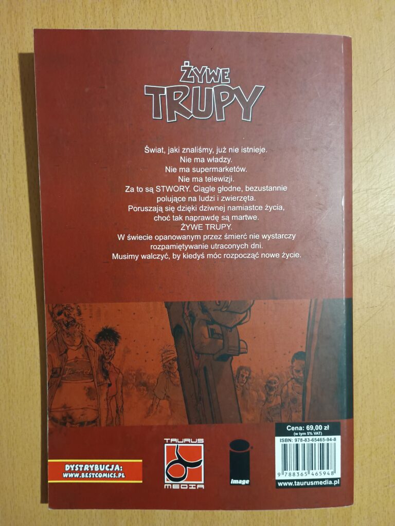Żywe Trupy” to komiks od Roberta Kirkmana, którego pierwszy zeszyt ukazał się w 2003 roku. Taurus Media publikuje tę serię w formie zbiorczych tomów zawierających po sześć zeszytów. Jeśli jesteś serialomaniakiem, bądź komiksowym czytelnikiem, to na pewno słyszałeś/słyszałaś o tej postapokaliptycznej pozycji. We wakacje tego roku wydawnictwo wznowiło dodruk komiksu, na podstawie którego powstał hitowy serial z Andrew Lincoln’em (Rick Grimes) i Norman’em Reedus’em (Daryl Dixon). Uniwersum TWD zajmuje szczególne miejsce w moim sercu, więc cieszę się, że mogłam poznać komiksowy pierwowzór.